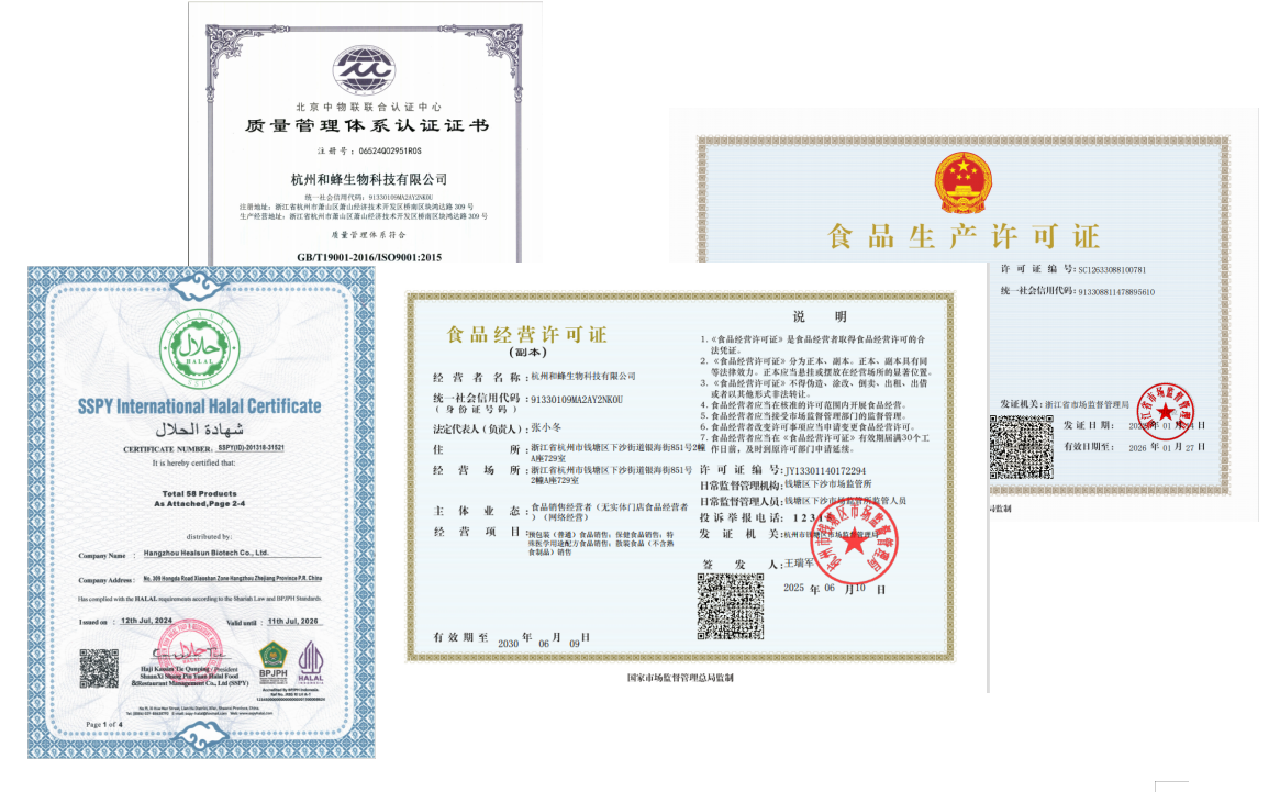 杭州和蜂生物科技有限公司创立于2017年,是一家专注于蜂产品、茶类产品及汉方药材深加工品的企业,公司集研发、生产、销售为一体,总部位于杭州钱塘区医药港小镇,在安徽宿松和长白山拥有合作有机养蜂基地,在杭州临安建立合作有机茶园,年产300吨有机抹茶粉;公司配备专用冷库和30万级洁净生产车间,通过了KOSHER/HALAL/ISO/HACCP等认证,抹茶系列产品拥有USDA/BRC有机认证。